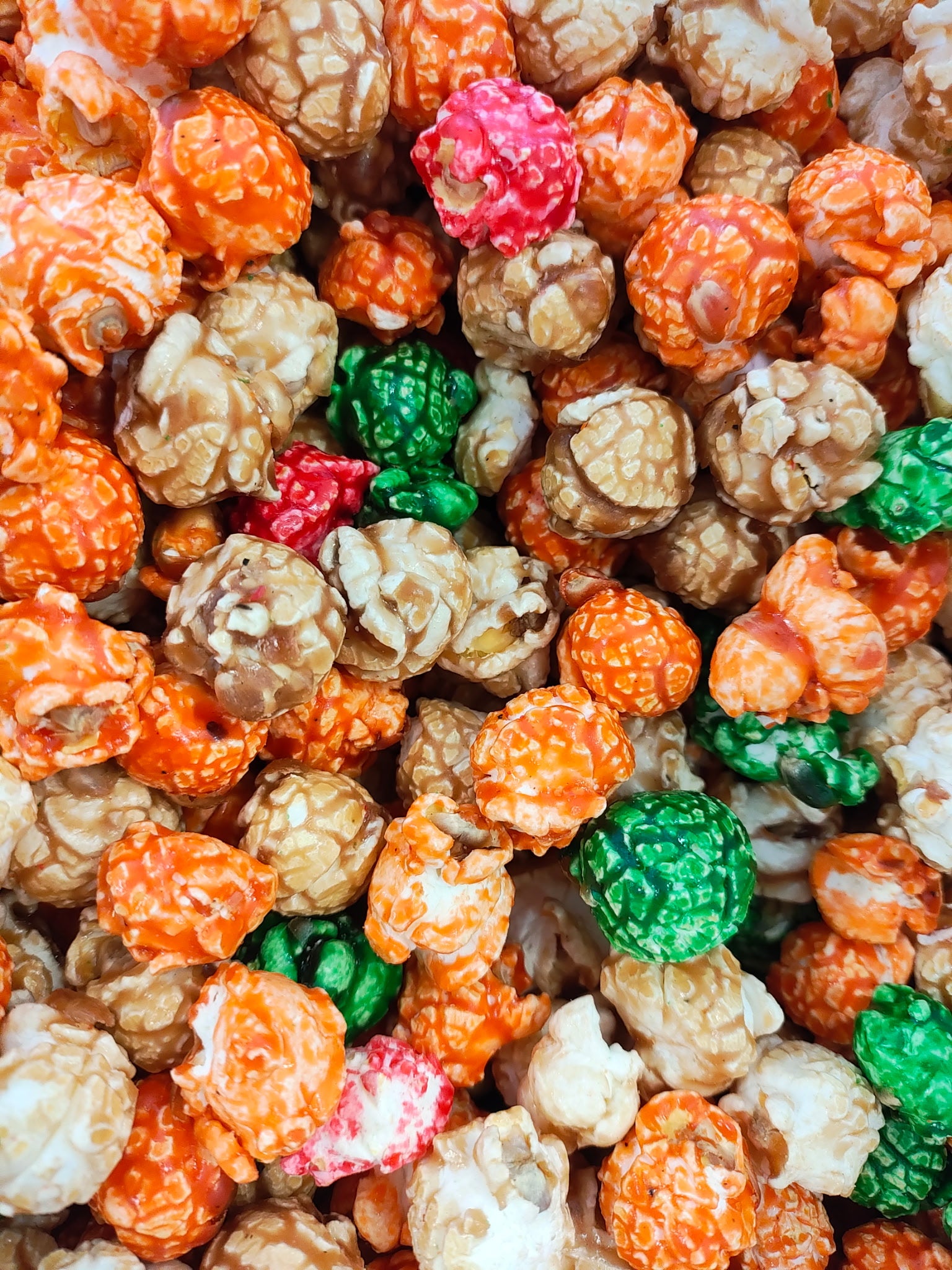 Autumn Leaves popcorn delights with vibrant colors that mimic the beauty of fall. Its satisfying crunch and sweet flavor combine to brighten your day!