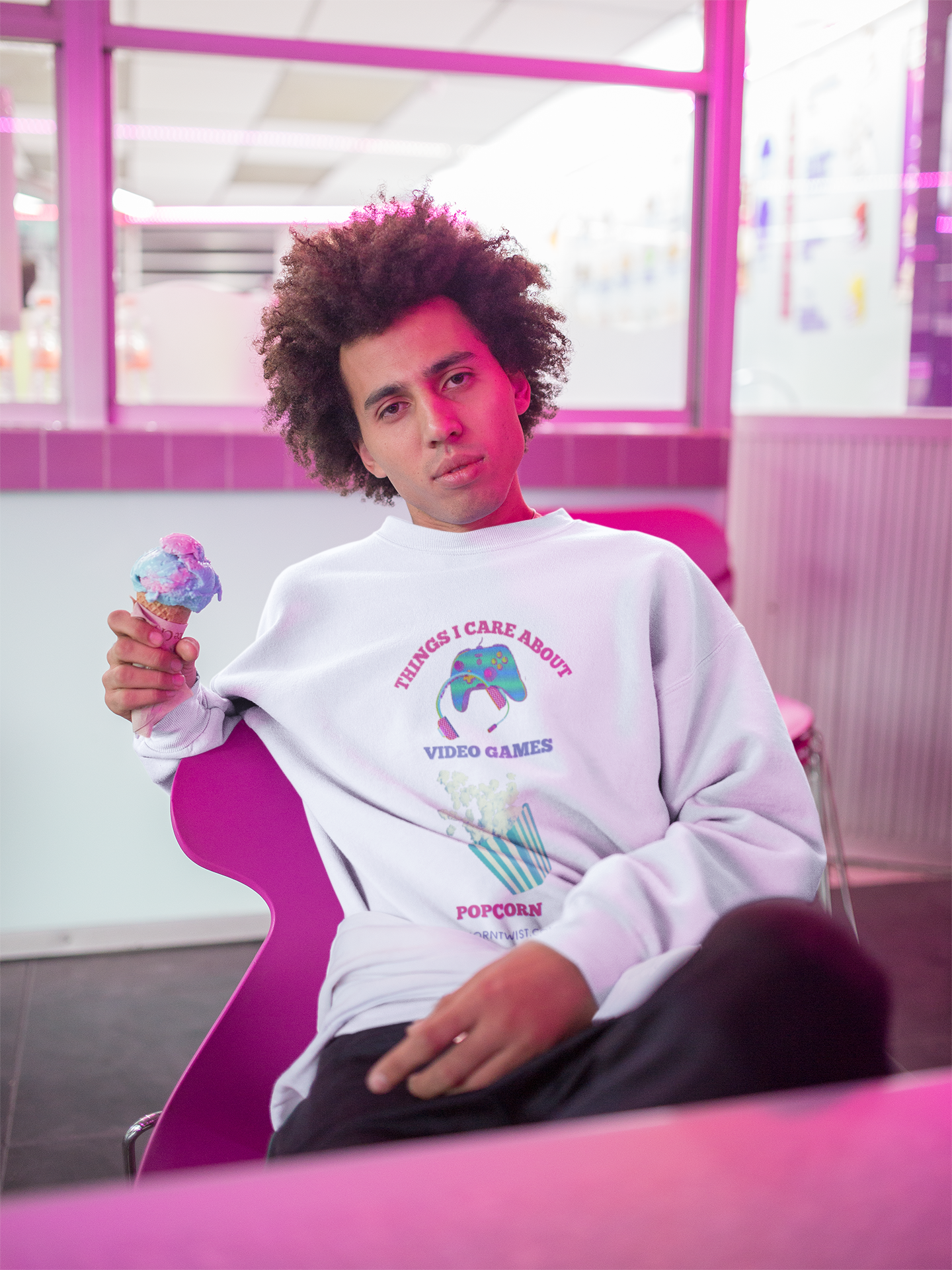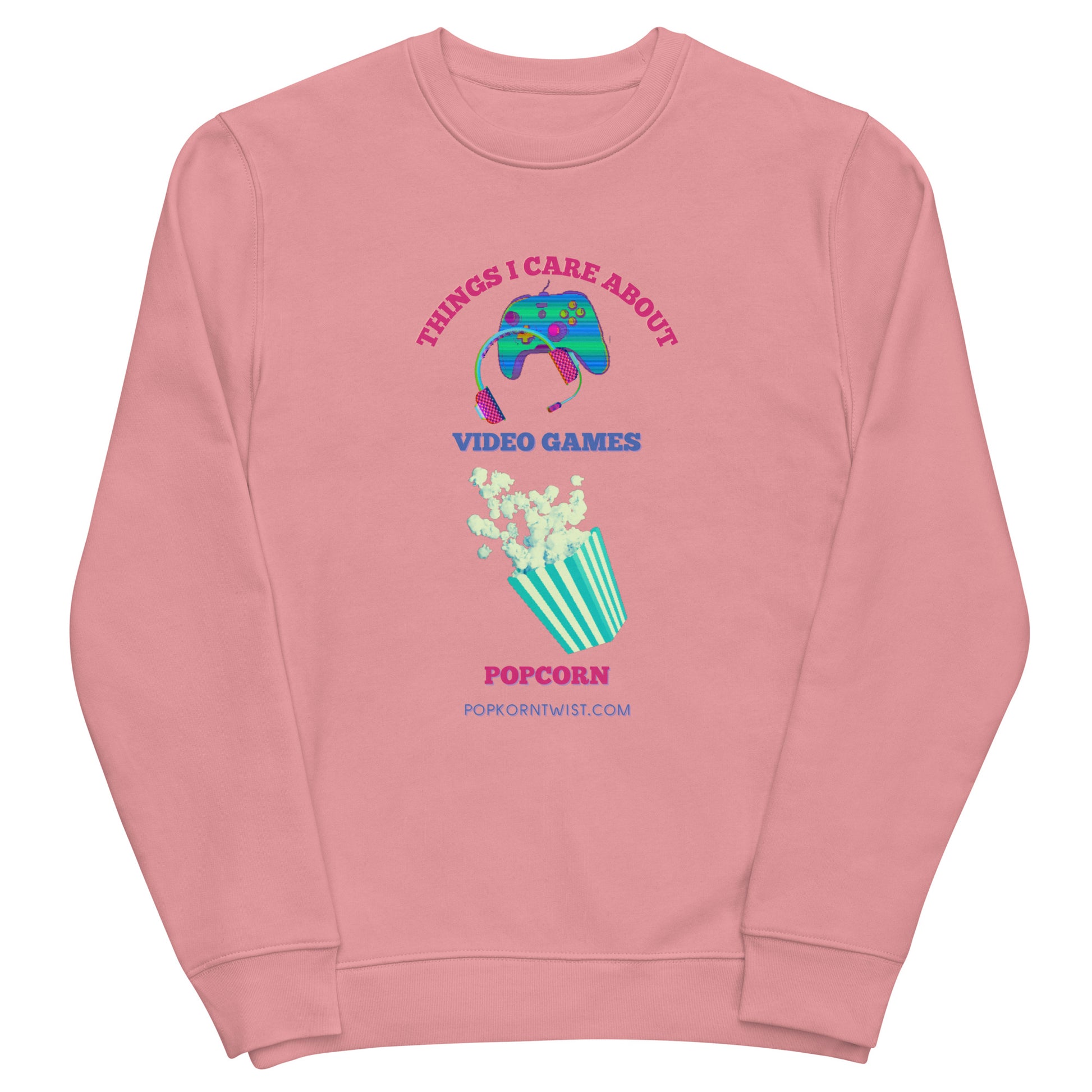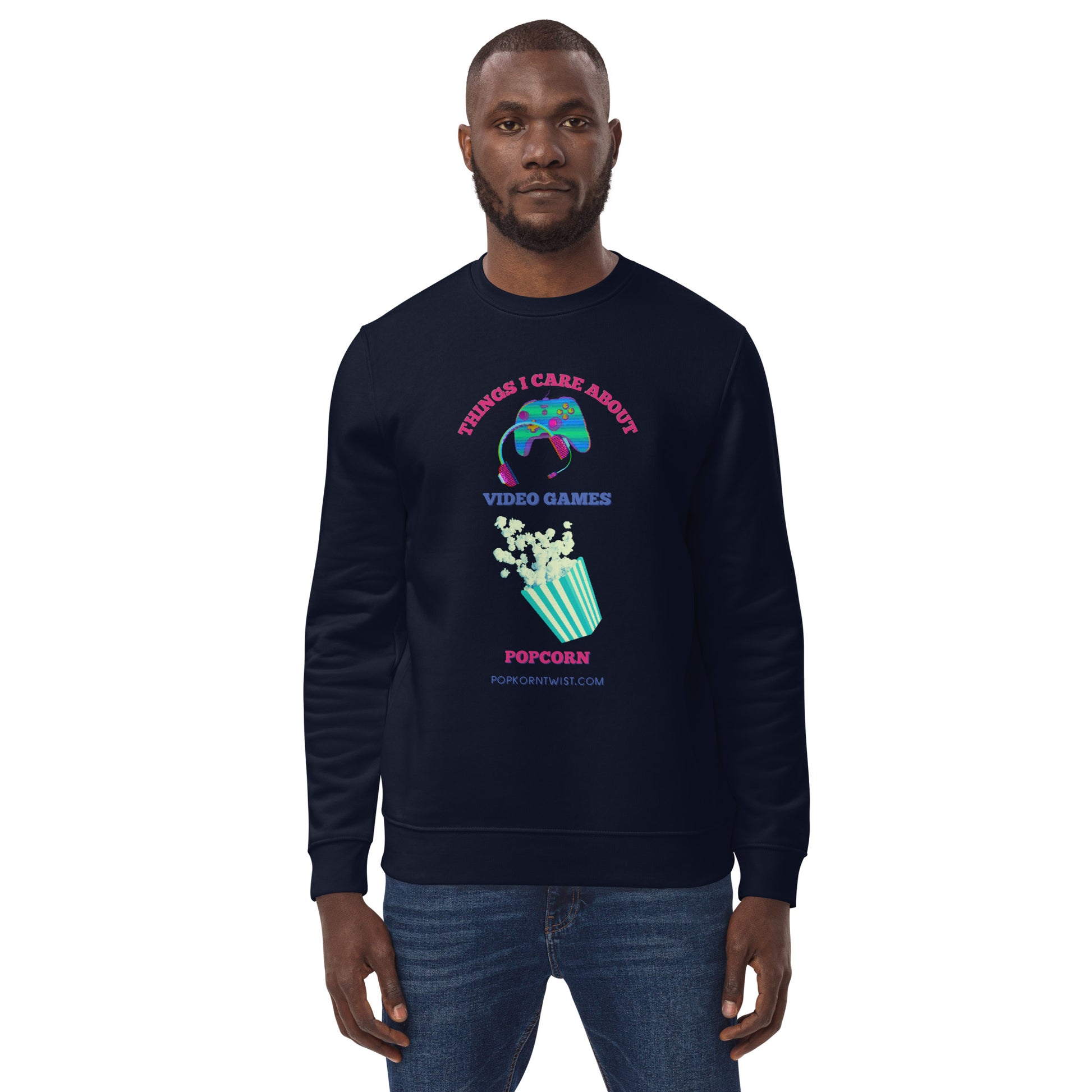 Eco sweatshirt - Things I Care About Video Games and Popcorn