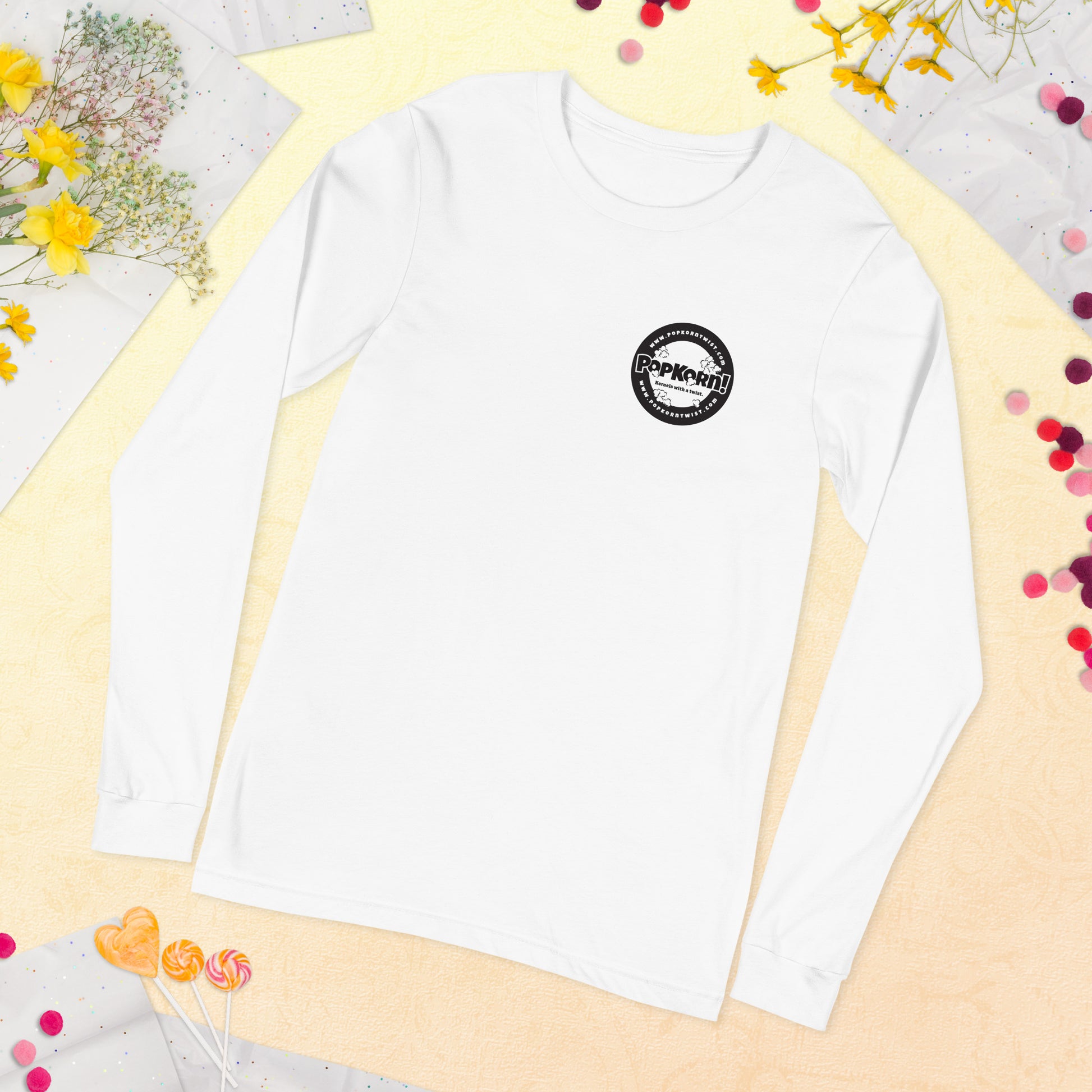 Long Sleeve Tee - Branded PopKorn Logo (small logo size)